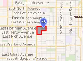 John R. Rogers is located in the Nevada/Lidgerwood neighborhood,[5] 3.25 miles (5.2 km) northeast of Downtown Spokane and about 1 mile (1.6 km) east of Northtown Mall and Division Street, the north-south corridor, which separates the city into east and west. While the school is about 2 miles (3 km) southwest of the Hillyard Historic District, it is often associated with the area, due to its close proximity to the former town and the site of the former Hillyard High School.[6]