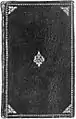 The edges of the front cover board covered in calfskin consist of two lines. Within these two line borders there is a marked out panel of two lines. On the corners of this panel is a flourish of tooling.[22] This tooling is a center flower with a fan-shaped tool within the corner. A small flower cluster goes outwards from the edge corners of the cover towards the center. At the upper and lower ends of the main cover halfway between the outer corners is an impression of a triangle of three buds. In the dead center of the cover is an impression of the small flower cluster as used on the outer edge corners. There is a "J" gold initial on the left side of this center image and a "S" gold initial on the right side of the center image, perhaps for the name John Sherman.[22] Sherman was the representative to the General Court of the Massachusetts Colony in 1651, 1653, 1663 and 1680.[23]