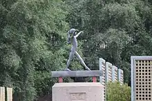 Robinson first made a name for himself with representational pieces. His figurative bronzes ranged in scope and scale from life-size commissioned sculptures of children[5] to athletic sculptures, and included a commissioned bust of[6] Queen Elizabeth and another of the Queen Mother. His representational sports figure Acrobats[7] (1980, 5 metres) was first mounted at the Hyatt Regency hotel in Maui, Hawaii. There are another 7 examples around the world, one of which is located outside the Australian Institute of Sport in Canberra, Australia. Another of his athletic sculptures, Hammer Thrower,[8] may be seen outside the Bowring Building in Tower Hill, London, at the United States Sports Academy, Daphne, Alabama, and in Melbourne, Australia. Robinson was Official Sculptor for the British Olympic Committee in 1988. His Gymnast[9] is at the Olympic Museum in Lausanne, donated by the Australian Olympic Committee.