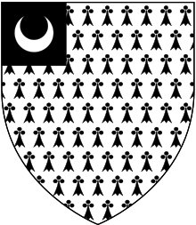 ![]() Arms of Strode of Parnham in Dorset: Ermine, on a canton sable a crescent argent | |