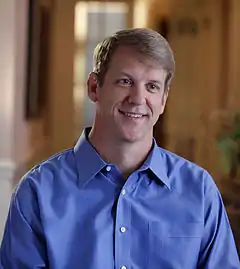 In his civilian life, he and his wife own and operate a large Packaging Solutions company in Southern California.[5] He has held many positions up to CEO and President of various logistics and supply chain companies, along with consumer product companies. He began his corporate career in marketing and brand management with Procter & Gamble, and then with Kellogg’s, where he was the Director of wholesome snacks, managing such icon brands as NutriGrain, Rice Krispies Treats, and Special K bars. This portfolio of brands generated over $400 million in annual sales. After leaving Kellogg’s in 2004, he created a national beverage company to provide healthy snack drinks to baby boomers.[6] He went on to manage Caymen Ventures, Inc., which focused on identifying middle market companies for sale in the consumer goods, food and beverage, logistics and supply chain sectors. He has previously served as the CEO of Raymond Express International,[7] in produce and logistics, and then Valudor Products, LLC, an importer of specialty chemicals.