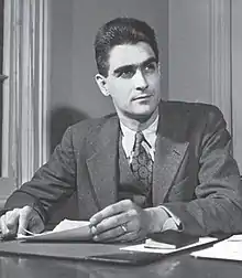 He was heavily involved in journalism at Harvard, serving as an editor for The Harvard Crimson in 1934.[2] However, he found it too socially conservative and set up a rival daily, the Harvard Journal, which ran for almost six weeks. It was more inclusive than the all-male Crimson, as it covered the entire university and had a section on Radcliffe College with its own editorial board.[4] Due to the time spent on editing the new newspaper, he did not finish his senior thesis on time and graduated in 1935, a year late.[3] He was interested in Scottish history because of familial ties to Scotland–he had relatives living in Foulis Castle–and wrote his senior thesis on eighteenth-century Scottish history.[5]