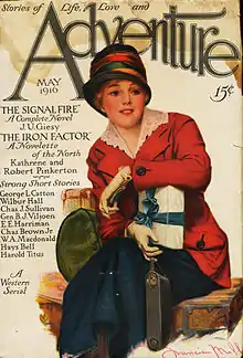 Robert Weinberg's website described the series of stories starring Jason Croft as "[o]ne of the most popular scientific romance trilogies published in All-Story Weekly magazine of the first quarter of the 20th century."[4] Giesy also wrote for other pulp magazines such as Argosy, Adventure and Weird Tales. Giesy's 1915 novel All For His Country is a story of a future invasion of the US by the Japanese.[5] Because All For His Country depicts Japanese-Americans living in California helping the invasion, some critics have cited it as an example of the anti-Japanese racism that ultimately resulted in the Internment of Japanese Americans after Pearl Harbor.[6] Giesy lived in Salt Lake City where he met Junius B. Smith, with whom he co-authored a large number of stories, including those featuring the occult detective Semi-Dual.
