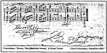 Excerpts shown here are from the last page of Schumann's Piano Concerto in A minor with a dedication to Mathilde Verne by Clara Schumann:
