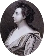 Born in London and baptised on 24 January 1664,[5] Vanbrugh was the fourth child (of 19), and eldest surviving son,[6] of Giles Vanbrugh, a London cloth-merchant of Flemish descent[7][8] (as evident in the name, contracted from "Van Brugh") and Protestant background,[9] and his wife Elizabeth,[10] widow of Thomas Barker (by whom Vanbrugh's mother had the first of her twenty children, Vanbrugh's elder half-sister, Elizabeth), and daughter of Sir Dudley Carleton, of Imber Court, Thames Ditton, Surrey. He grew up in Chester, where his family had been driven by either the major outbreak of the plague in London in 1665, or the Great Fire of 1666.[10][lower-alpha 1] It is possible that he attended The King's School in Chester, though no records of his being a scholar there survive. Another candidate would have been the school at Ashby-de-la-Zouch, founded by Henry Hastings, 3rd Earl of Huntingdon. It was also not uncommon for boys to be sent to study at school away from home, or with a tutor.[5][11]