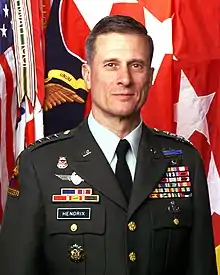 Hendrix's commands include V Corps; Task Force Hawk;[4] 3rd Infantry Division, Fort Stewart, Georgia; and the United States Army Infantry Center, Fort Benning, Georgia.