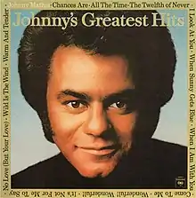 Johnny's Greatest Hits is a compilation album by vocalist Johnny Mathis that was released by Columbia Records on March 17, 1958,[1] and has been described as the "original greatest-hits package".[2] The LP collected all but one of the songs from the first six singles he recorded, including eight A- and B-sides that made the singles charts in The Billboard (now simply known as Billboard magazine) as well as three B-sides that did not chart and one new track ("I Look at You") that was co-written by Mathis but not released as a single.