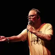 In 2015, he co-hosted the podcast It's Funny Because with fellow Sacramento comic Keith Lowell Jensen, in which the pair interviewed national and Sacramento-area comedians.[29] The Sacramento Bee called it "a riveting and eye-opening dissection of the art and craft of comedy."[30][31] With comic Daniel Humbarger, he co-hosted the sports podcast Cowbell Kingdom in 2015 and 2016.[32][33][34][35]