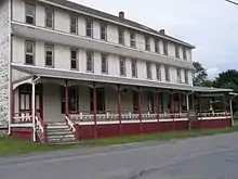 The Pittsburgh speculators built cottages and a clubhouse to create the South Fork Fishing and Hunting Club, an exclusive and private mountain retreat. Membership grew to include more than fifty wealthy steel, coal, and railroad industrialists.[11] Lake Conemaugh at the club's site was 450 feet (140 m) in elevation above Johnstown. The lake was about 2 miles (3.2 km) long, about 1 mile (1.6 km) wide, and 60 feet (18 m) deep near the dam. The dam was 72 feet (22 m) high and 931 feet (284 m) long.