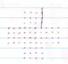 Join Five (also known as Morpion solitaire, Cross 'n' Lines or Line Game) is a paper and pencil game for one or two players, played on a plus-shaped grid of dots. The origins of the game are probably in northern Europe. References to the game first appeared in French publications in the 1970s.[1] In addition to being played recreationally, the game has been the subject of theoretical studies[2] and computer searches for solutions.[3]