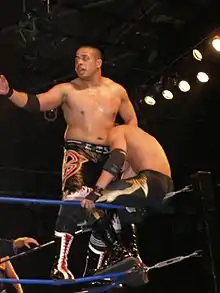 ![]() Joker wearing his iconic facepaint before a 2012 match in JAPW | |