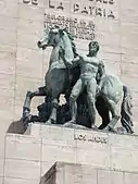 Returning to Argentina in 1935, Fioravanti was appointed Professor at the College of Fine Arts.[1] His portrait of his wife, painter Ludmilla Feodorovna (Woman with Book), earned him a gold medal at the 1936 National Salon.[2] Establishing an atelier in seaside La Lucila del Mar, he created numerous landmark monuments in the ensuing years, including memorials in Buenos Aires to Presidents Nicolás Avellaneda and Roque Sáenz Peña (1935–36), Venezuelan General Simón Bolívar (1942), U.S. President Franklin Roosevelt, as well as two sea lion effigies guarding an esplanade in Mar del Plata (1941), a memorial in Montevideo to Uruguayan General Fructuoso Rivera (1965),[5] and to General Manuel Savio, father of the Argentine steel industry, in Villa María, Córdoba (1969).[6]