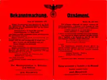 On the first day of his tenure as Reichsprotektor in Bohemia and Moravia, 27 September 1941, Reinhard Heydrich, seeking to break the resistance of Czech patriots, declared a civil emergency. In this he stated that the military court in Prague had found Bílý and Division General Hugo Vojta guilty of treason and sentenced them to death. Bílý was executed on 28 September 1941, at 9 pm by a firing squad. On the scaffold, he refused to wear a blindfold. His last words were: “Long live the Czechoslovak Republic! Dogs, fire!"[3][4][5]