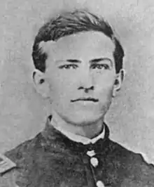 Later in September 1862, the 89th was sent to Western Virginia (today West Virginia) to reinforce Union forces there, and joined in their advance for a month. The regiment settled into winter quarters, but was called out for transport to Tennessee, where it helped relieve Fort Donelson in February 1863. Before this action, Foraker had seen little fighting, and the bloody scenes there were a shock to him; he wrote his parents, "To know how dreadful war is you must see it yourself."[10] The 89th remained at Donelson only a few days before being sent to join the Army of the Cumberland under the command of Major General William Rosecrans near Carthage; there, Foraker was promoted to second lieutenant. In June, Foraker led an advance guard that clashed with the Confederate rear in what developed into the Battle of Hoover's Gap, and the Union forces slowly advanced across Tennessee, reaching Chattanooga in September. From Chattanooga, Foraker and two other officers were sent home to collect new soldiers who were expected to be drafted, but the plan to draft recruits was abandoned due to political opposition. In November he returned to Chattanooga, where the 89th was now part of the Army of the Tennessee under Brigadier General William Tecumseh Sherman, in time to fight in the Battle of Missionary Ridge.[11]