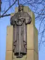 War memorial | Gardens of the Church of St John-at-Hackney, Hackney, London | 1921 | Obelisk-mounted statue | Bronze and Portland stone | 4.6m tall | Grade II | Q26671054 | [9][10] |