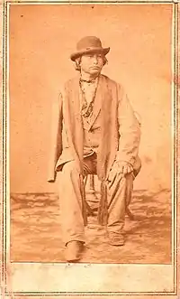 Joe Jim has been credited with naming Topeka, Kansas. Asked by White settlers what the name of the place was, he answered, "Topeka", stating that it meant "a good place to grow potatoes", probably meaning the prairie turnip rather than the common potato.[7] In 1867, Joe Jim accompanied a Kaw delegation headed by Chief Al-le-ga-wa-ho to Washington. The Kaw were disappearing rapidly as a tribe, their lands being occupied by White settlers. They sought a new reservation free of white squatters in the Indian Territory (later Oklahoma).