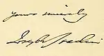 In 1848, the pianist and composer Franz Liszt took up residence in Weimar, where Goethe and Schiller had lived.[20] Liszt was determined to re-establish the town's reputation as the Athens of Germany. There, he gathered a circle of young avant-garde disciples, vocally opposed to the conservatism of the Leipzig circle. Joachim was amongst the first of these. He served Liszt as concertmaster, and for several years enthusiastically embraced the new "psychological music," as he called it. In 1852 he moved to Hanover, at the same time dissociating himself from the musical ideals of the 'New German School' (Liszt, Richard Wagner, Hector Berlioz, and their followers, as defined by journalist Franz Brendel). "The worship of Wagner's music permeating musical taste in Weimar was to Joachim inordinate and unacceptable."[21] Joachim's break with Liszt became final in August 1857, when he wrote to his former mentor: "I am completely out of sympathy with your music; it contradicts everything which from early youth I have taken as mental nourishment from the spirit of our great masters."[22] Hanover "was then an independent kingdom, later to be absorbed in the German empire."[23] King Georg of Hanover was totally blind and very fond of music; he paid Joachim a good salary and gave him considerable freedom.[24] Joachim's duties in Hanover included playing the main violin part in opera performances and that or conducting state concerts.[25] He had five summer months off, in which he made concert tours around Europe.[26] In March 1853 he sent to Liszt a copy of the Overture to Hamlet he had recently composed.[27]
