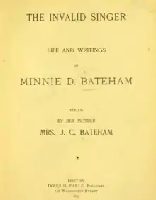 - The invalid singer; life and writings of Minnie D. Bateham (1895)
