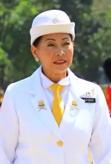 ![]() Placido wearing her UST ROTC Matron of Sponsors uniform | |