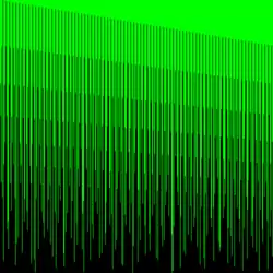 A drawing for the Josephus problem sequence for 500 people and skipping value of 6. The horizontal axis is the number of the person. The vertical axis (top to bottom) is time (the number of cycle). A live person is drawn as green, a dead one is drawn as black.[1]