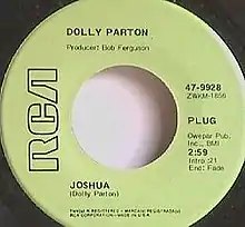 "Joshua" is a song written and recorded by American country music artist Dolly Parton. It was released on November 9, 1970 as the first single and title track from the album Joshua. The song was significant for being her first single to reach number 1 on the US country charts.[1] The single reached number 1 on the Billboard country charts in February 1971. Parton received her first Grammy nomination in the Best Country Female Vocal category for the song, losing to Lynn Anderson.