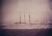 The hurricane of 1888 came in the guise of a northeast gale and snowstorm accompanied by extremely high tides, and 100 mph (155 km/h) winds created tremendous surf conditions. The snow and sleet in the early part of the storm gave way to rain. Early in the day of November 25, 1888, Captain James and a few hardy beachmen climbed to the top of Telegraph Hill, where through nearly blinding snow and wind they observed five schooners and one coal barge anchored off an area southeast of Boston called Nantasket, attempting to ride out the storm.[4] With the intensity of the storm growing and sensing that it was only a matter of time before some of the ships at anchor yielded to the storm, Captain James notified his volunteers to be ready for service, and about two o'clock ordered patrols all along the ocean shore.[2]
