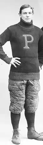 While at Penn, McCracken was an all around student athlete, playing varsity football four years, track four years (captain his senior year) and was a member of the gymnastics team. McCracken was named to Walter Camp's College All American football team on three occasions. He was a third-team All American in 1897; a second-team All American in 1898 and in 1899 a first-team All American.[3] McCracken played primarily as an offensive fullback and defensive guard. During 1899 he played alongside Outland and A. R. Kennedy, another transfer students from the University of Kansas football program. McCracken, Outland and Kennedy were known around Philadelphia's Franklin Field as the "Kansas Musketeers". During McCracken's four years of playing football at Penn (1897–1900) the football team compiled a 47–5–2 record.