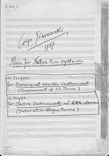 - Facsimile of the 53EDO piece preface by J. Slavenski.
