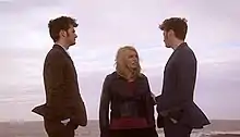 ![]() The Tenth Doctor and his clone re-enact the famous beach scene in Doomsday, completing the on and off relationship of The Tenth Doctor and Rose Tyler. | |||