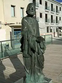 Not much is known of Juan Alfonso de Baena's life. However, it is known that Baena was born in the late 14th century in the town of Baena in Córdoba, Spain to Jewish parents.[1] According to research by José Manuel Nieto Cumplido, Baena's father was named Pero López and he grew up in the former Jewish quarter of Baena.[2] Other members of Baena's family, including his wife, children and nephew, were also uncovered during this research. Nieto Cumplido discovered that Baena's wife was called Elvira Fernández de Cárdenas, who was the daughter of Lope Ruiz de Cárdenas and María López de Luna.[3] Baena and his wife had at least two children, one also named Juan Alfonso de Baena and the second named Diego de Carmona.[4] Additionally, Baena's nephew (the son of Baena's brother Fernando Alonso de Baena), Antón de Montoro, was a fellow poet. Montoro was a used-clothes dealer called a ropero who also enjoyed wealthy patrons and used his talent at self-deprecating rhymes that highlighted his unfortunate appearance and Jewish blood.[5]