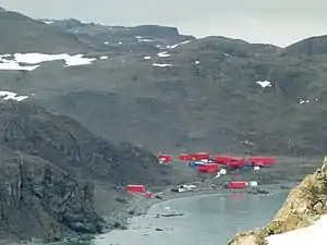 The old Juan Carlos I Base, with South Bay and Ereby Point in the background