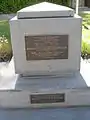Captain Matthew Flinders by F. Brook Hitch, A.R.B.S.[17] Pedestal of Murray Bridge red granite from Kirchel's quarry at Swanport. Paving of Tea Tree Gully freestone. Architect, A.E. Simpson, I.S.O., F.R.A.I.A. (Architect-in-Chief of subscription.) Unveiled 12 April 1934.[18]