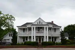 The Judge Benjamin Shaver House is a historic house at 701 12th Street in Mena, Arkansas. It is a 2+1⁄2-story wood-frame structure, with a hip roof that projects over a two-story porch. There are further stepped projectings beyond this, culminating in an gable section supported by Ionic columns, with a Palladian window in the pedimented gable end. The house was built in 1896, two years after Mena was incorporated by Benjamin Shaver, a prominent local lawyer and judge. The building is further notable for its association with his daughter Dorothy, who parlayed an early career as a dollmaker into becoming CEO of Lord & Taylor.[2]