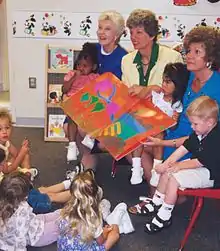 Welcoming more than 10,000 visitors per year, O'Bannon referred to the Indiana Governor's Residence as the "State's Living Room" and used the high-profile location to bring attention important community issues, including amplifying the education and reading programs that were a cornerstone of her husband's agenda in the Governor's Office. In line with that, she hosted an annual Reading Day at the Residence,[7] which paired graduates of adult literacy programs with school children from throughout the state. She also made the Governor's Residence a showcase for Indiana arts with the creation of the First Lady's Arts Series, featuring new exhibitions each quarter by Indiana artists, and the annual Day with the Arts, co-hosted by VSA of Indiana, which welcomed more than 800 children with disabilities and volunteers for arts activities and workshops. O'Bannon, who had been a long-time advocate for people with disabilities, raised more than $1.2 million in private funds to renovate of the Governor's Residence to make it accessible for people with disabilities.[15][16]