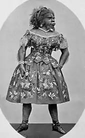 According to Ireneo Paz, Francisco Sepúlveda, a customs official in Mazatlán, purchased Pastrana and brought her to the United States.[6] At first, Pastrana performed under the management of J.W. Beach, but in 1854, she eloped with Theodore Lent, marrying him in Baltimore, Maryland.[7] Lent took over her management, and they toured throughout the US and Europe. Pastrana was advertised as a hybrid between an animal and a human and worked in sideshows and freak shows under the stage names the "Baboon Lady",[8] the "Dog-faced Woman", the "Hairy Woman", the "Ape-faced Woman",[9] the "Ape Woman", the "Bear Woman", and "The Nondescript". However, during her performances, she illustrated her intelligence and talent: singing, dancing, and interacting with the audience.[10]