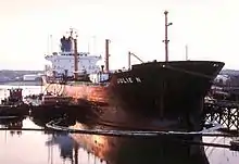 The Julie N. is a Liberian tanker that was involved in an oil spill occurring on the Fore River on 27 September 1996 in Portland, Maine. The 560 foot (170 m) ship was carrying over 200,000 barrels (32,000 m3) of heating oil and was headed towards a docking station in South Portland to unload its contents.[1]