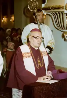 Július Gábriš (5 December 1913 in Tesárske Mlyňany – 13 November 1987 in Trnava) was a Slovak Bishop, Apostolic Administrator of Archdiocese of Trnava during communist-controlled Czechoslovakia.[1]