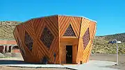 The remains of beatified young Mapuche Ceferino Namuncurá rest on the foot of a hill in the small village San Ignacio, located nearly 60 km from Junín de los Andes. The sanctuary was designed as a giant cultrun drum with wooden walls, sheet steel roofing and rhombus-shaped windows with multicolor glass. It is recognized as a pilgrimage point within the Neuquén province.[24]