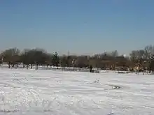 Briefly the swamp was again mined for peat to support road projects of New York City parks commissioner Robert Moses. By 1942 the Works Progress Administration had completed improvement efforts on the portion of the park east of 76th Street to include eight tennis courts, four baseball fields, handball courts, and a sprinkler/wading pool.[5] The 55 acres (22 ha) park's western third was left in its original swampy condition except for some paved walking paths and simple lighting. The park would remain unfinished until 1967, with the addition of two parking lots, more baseball fields, a running track, and football/soccer field. A proposal for a swimming pool was fought vehemently by the Juniper Valley Civic Association, however.[3][5]