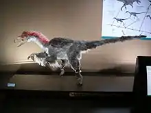 In the hall representing the Cretaceous period, which is the last period of the Mesozoic era from 145 to 66 million years ago, the displays relate to the biological and social habits of dinosaurs, reasons for their extinction by the end of the Cretaceous period, that are attributed to meteorite, volcanic eruptions and intense geographic and climatic changes. Evolution of birds inferred as theropods evolving from the non-avian dinosaurs are represented by the Archaeopteryx (a prehistoric bird) and dinosaurs such as the Deinonychus or the Dromaeosaurus.[15]