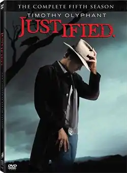The fifth season of the American television drama series Justified premiered on January 7, 2014, on FX, and concluded on April 8, 2014, consisting of 13 episodes.[1] The series was developed by Graham Yost based on Elmore Leonard's novels Pronto and Riding the Rap and his short story "Fire in the Hole".[2] Its main character is Raylan Givens, a deputy U.S. Marshal. Timothy Olyphant portrays Givens, a tough federal lawman, enforcing his own brand of justice in his Kentucky hometown.[2] The series is set in the city of Lexington, Kentucky, and the hill country of eastern Kentucky, specifically in and around Harlan.[3] The fifth season was released on DVD and Blu-ray in region 1 on December 2, 2014.[4]