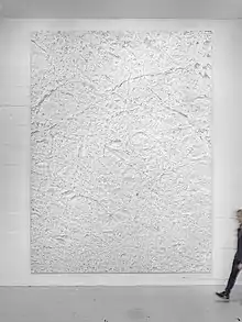 Guariglia's solo exhibition, Earth Works: Mapping the Anthropocene debuted at the Norton Museum of Art in September 2017.[3] The museum was forced closed within hours of the show opening due to hurricane Irma, the irony of which was written about by The Washington Post. The exhibition has since traveled to the USC Fisher Museum of Art in conjunction with the Natural History Museum of Los Angeles County. The show contains works derived from source materials collected on flights with NASA, in addition to other aerial topographic images Guariglia took of agriculture and mining in the landscape.[20][21]