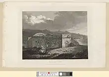 Apparently he picked up his head and crossed Ramsey Sound walking on the water carrying his head in his arms and his body was buried in the small ruined chapel which still stands on the mainland at St Justinian's, immediately opposite his island home; his bones were later moved to St Davids Cathedral.[2][3] During the reformation, Bishop William Barlow was strongly opposed to the veneration of relics, pilgrimages, and other Catholic practices. In an attempt to suppress the cult of St David, at St David's Cathedral, in 1538 he stripped St David's shrine of its jewels and confiscated the relics of St David and St Justinian in order to counteract "superstition".