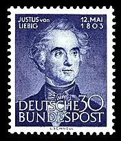 German stamp picturing Justus von Liebig, 1953