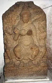 Jyestha appears early in the Hindu tradition.[5] She first appears in the Baudhayanagrhyasutra (300 to 600 BCE).[17] Many of her images still exist, usually on the outskirts of villages. During the 7th-8th century CE, she was a popular goddess in South India. As Shaktism spread, her fame slowly declined.[18] The Vaishnava Alvar saint Thondaradippodi Alvar, dated between 7th to 9th century, comments on number of "foolish devotees" who worship Jyestha, who keeps them away from the truth. He decreed that it was useless to worship her.[2][18] By the 10th century, her worship more or less ceased.[2]