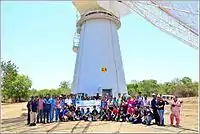 Study Tour to GMRT and IUCAA Observatory - Jyotirvidya Parisanstha organized a study tour to Giant meterwave Radio Telescope GMRT at Khodad, and IUCAA Girawali Observatory, Girawali; both near Narayangaon, Pune on Sunday May 25, 2014. GMRT is the world’s largest array of radio telescopes at meter wavelengths. It contains 30 fully steerable 45 meter diameter antennas arranged in ‘Y’ shape with the diameter of nearly 25 km. IUCAA Girawali Observatory has 2 meter optical and near-infrared telescope. Information given on construction and working of these telescopes. Dr. Divya Oberoi, Scientist, GMRT and Mr. Arvind Paranjpye, Director, Nehru Planetarium guided the tour.