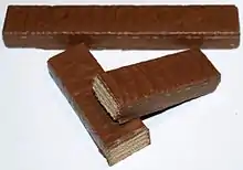 The main speciality of Kägi Söhne is the Kägi fret (using the shortened French word for wafer: "gaufrette"),[2] a twin chocolate coated wafer bar. It has been produced since 1958 (in its current form) and is today one of the most iconic chocolate bars produced in Switzerland.[3][4] The Kägi Toggenburger, which are fresh butter biscuits, are the other speciality of the company.