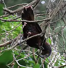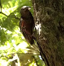 The kākā (Nestor meridionalis) is a large species of parrot of the family Nestoridae found in native forests of New Zealand. Two subspecies are recognised. It is endangered and has disappeared from much of its former range, though conservation efforts mean it is now increasingly common across Wellington.