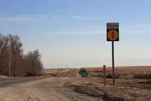K‑1 highway was originally established sometime between 1918 and 1932.[5][6] Originally, it ran much farther to the north than its current terminus, passing from the Oklahoma–Kansas border south of Coldwater north through Greensburg, Kinsley, western sections of Pawnee County, La Crosse, Hays, Plainville, Stockton, and Phillipsburg to a northern terminus just northeast of the town of Woodruff.[6] It terminated at K-22, which was later known as U.S. Route 83, close to the border with Nebraska.[6] In 1941, the majority of K‑1 (except the southernmost section) began to be replaced with US‑183, beginning with the section between Rozel and Plainville.[6][7] By 1950, US‑183 had replaced all but the current alignment of K‑1.[8] It was not until 1953 that the entirety of K-1 was paved, as the section of K-1 that comprises the current alignment was not paved until between 1950 and 1953.[8][9] Since 1953, K-1 has remained at its current alignment.[2][9]