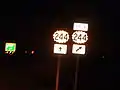 K-244 Spur is a 4⁄5-mile-long (1.3 km), north–south marked spur that links K-244 to K-57 northwest of Junction City and slightly south of the Milford Lake dam. The highway allows access from eastbound K-244 to northbound K-57, and from southbound K-57 to westbound K-244. K-244 Spur begins at K-244 and meanders in northeast direction to K-57.[4][15] On K-244 Spur in 2020, KDOT determined that on average the traffic was 115 vehicles per day.[5]